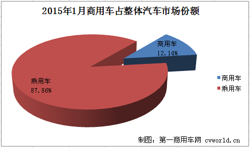 1月份,商用車281608輛的銷量在整個汽車市場僅占12.14%的份額。