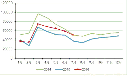 第一商用車網(wǎng)最新獲悉,2016年7月份,國內(nèi)重卡市場共約銷售各類車型5萬輛,比去年同期的3.72萬輛增長34%,環(huán)比今年6月下降16%。雖然同比還有較大增長,但這并不“妨礙”市場呈現(xiàn)出進入淡季的特征;從今年3月份至今的重卡行業(yè)月度走勢圖也可以看出,6、7月份的市場已逐漸步入淡季,而且,8月份銷量也不會有好轉(zhuǎn),市場要“蟄伏”到金九銀十的季節(jié)。