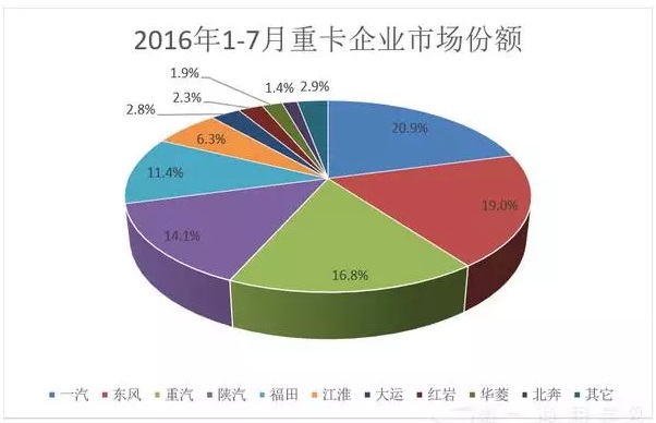 2016年1—7月國內(nèi)重卡市場銷量一覽(單位:輛)