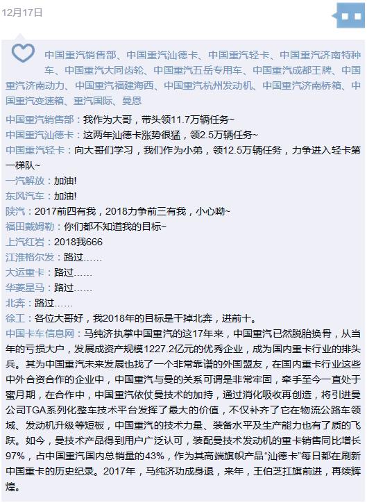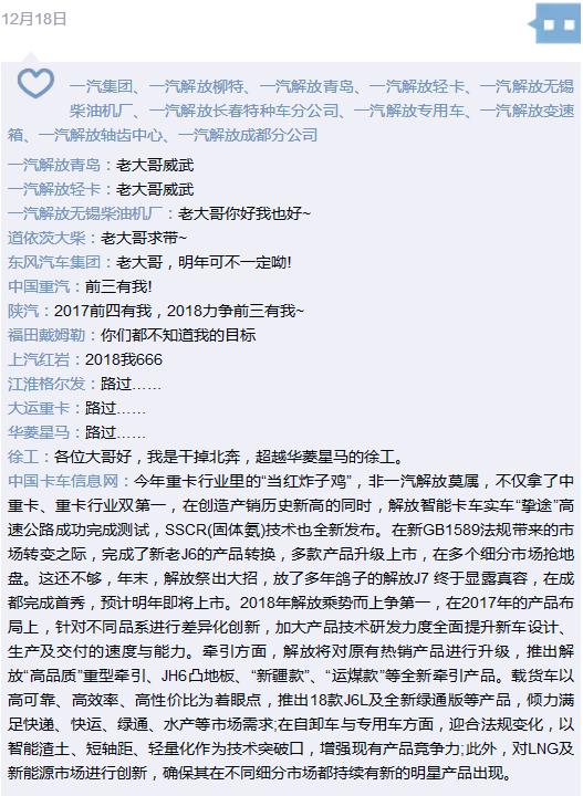 年底,重卡企業(yè)朋友圈是這樣曬的......