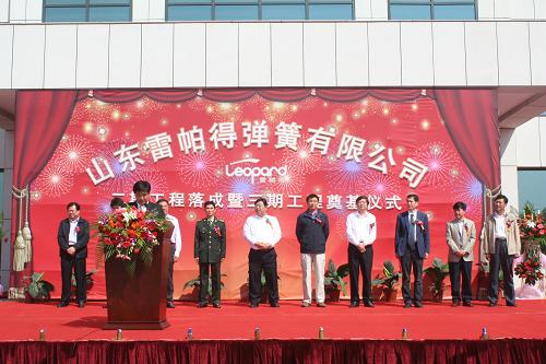 2011年9月20日上午,山東雷帕得彈簧有限公司二期工程落成暨三期工程奠基儀式在公司廠區(qū)隆重舉行。區(qū)委、區(qū)政府領導、區(qū)直各部門領導及開發(fā)區(qū)黨委、管委領導,解放軍總裝備部駐中國重汽軍代表、二炮駐中國重汽軍代表,中國重汽、中國一汽技術中心、唐駿歐鈴汽車、中通客車、方大特鋼、江陰興澄特鋼、青島鋼鐵等各單位領導、嘉賓出席。